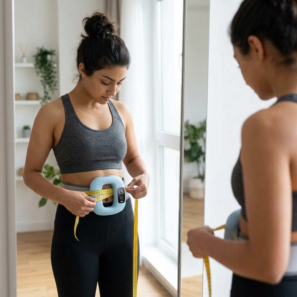 The device is designed to stimulate abdominal muscles and support core activation. When used consistently with exercise and a balanced routine, users may notice improvements in their waist appearance